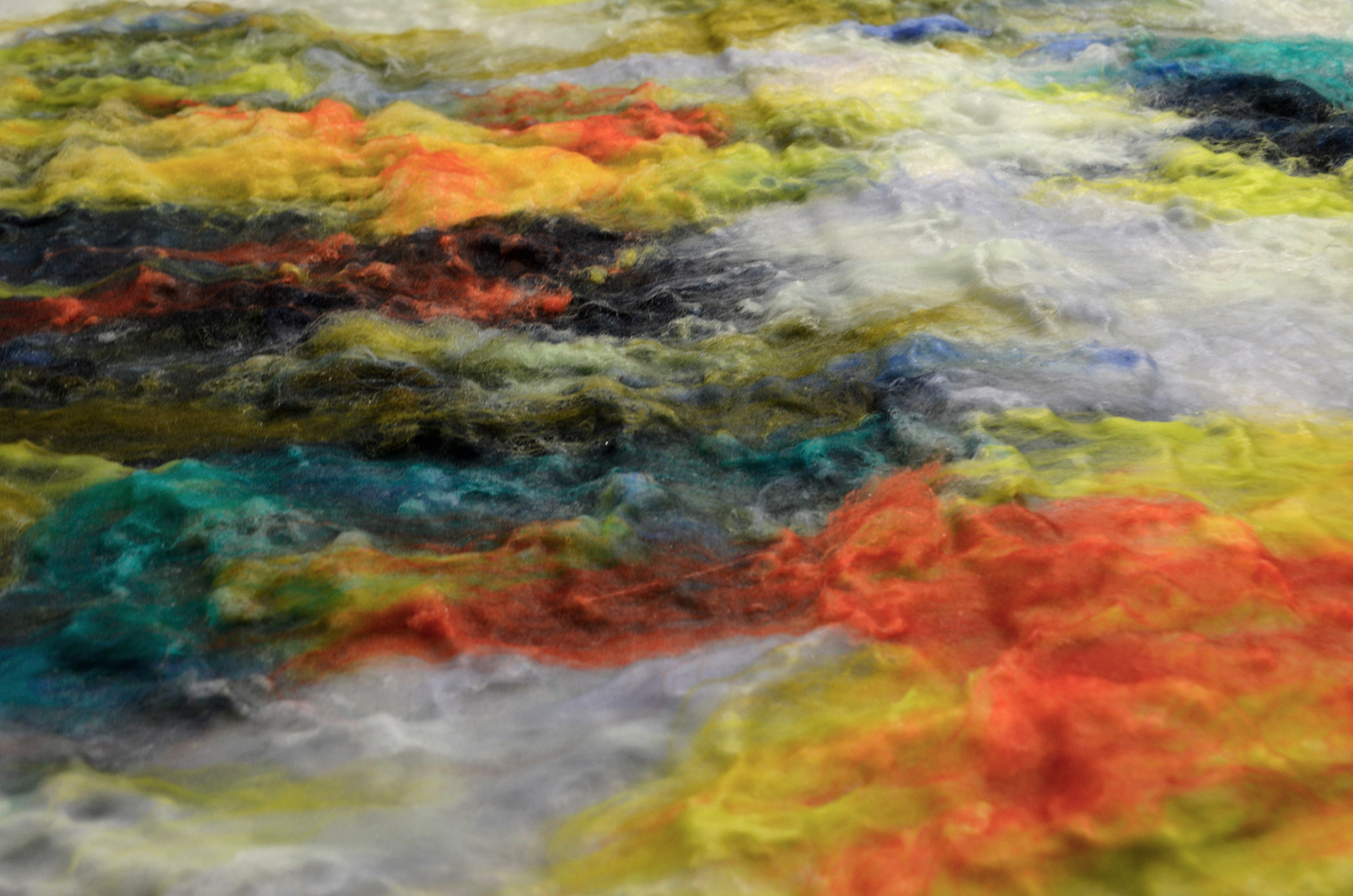 A large scale fine art wall piece that is made of wool through the felting process. All handmade process, with aide of machine wet felting.